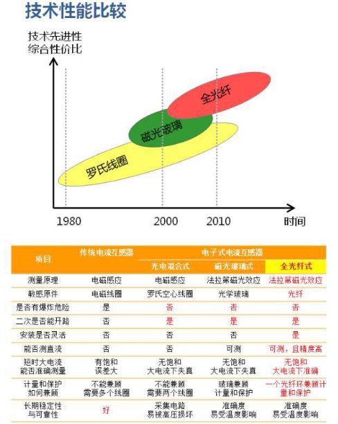 圖1電子式互感器及不同技術(shù)對(duì)比