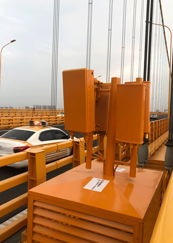 建站大橋上的基站,左側(cè)長方形盒子是5G發(fā)射單元,右側(cè)長方形盒子是4G發(fā)射單元