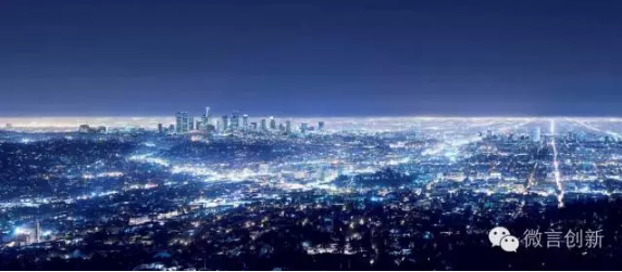 目前將可再生能源引入現(xiàn)有電網(wǎng)和配套基礎(chǔ)設(shè)施是一個(gè)非常巨大的挑戰(zhàn),因此要采取逐步將現(xiàn)有電網(wǎng)智能化的方法。下圖展示的是美國洛杉磯夜景,可以看出,它的電網(wǎng)是集成式的,區(qū)域也比較大;當(dāng)然上海的應(yīng)該會(huì)大好幾倍,因?yàn)樯虾5拿娣e更大。