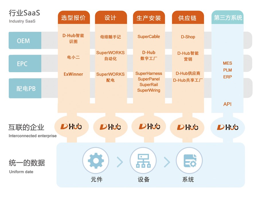 令永卓深諳數(shù)據(jù)的價(jià)值。他帶著創(chuàng)業(yè)家的韌勁,敏銳洞察電力裝備制造行業(yè)的發(fā)展趨勢(shì),本著從數(shù)據(jù)中學(xué)習(xí)、改變電力電氣行業(yè)的初衷,從數(shù)據(jù)中提取價(jià)值服務(wù)用戶的理念,提出用數(shù)據(jù)賦能行業(yè),致力于打通數(shù)據(jù)流。談起如今專注挖掘數(shù)據(jù)的價(jià)值,令永卓表示,這一切源于他求學(xué)時(shí)代的經(jīng)歷。大學(xué)期間,在清華工程力學(xué)系求學(xué)的令永卓建立了面向問題建立數(shù)學(xué)模型,把復(fù)雜的非線性問題抽象為簡單的線性問題進(jìn)行求解的思維方式。在后來的工作中,他發(fā)現(xiàn)設(shè)備的設(shè)計(jì)、生產(chǎn)制造以及運(yùn)維之間并非真正有效連接,存在嚴(yán)重的數(shù)據(jù)偏差甚至脫節(jié)的現(xiàn)象,為達(dá)到設(shè)計(jì)、制造以及供應(yīng)鏈的協(xié)同,他提出在電力裝備制造行業(yè)形成貫穿橫向、縱向、端到端的數(shù)據(jù)流通的舉措。之后,他將創(chuàng)想落地,從電氣軟件的數(shù)據(jù)建模開始,制定標(biāo)準(zhǔn),進(jìn)行3D仿真,通過機(jī)器智能設(shè)計(jì)、智能識(shí)圖、智能報(bào)價(jià),進(jìn)而幫助產(chǎn)品實(shí)現(xiàn)協(xié)同制造。令永卓透露:“當(dāng)前基于D-Hub制造的縱向數(shù)據(jù)流與D-Hub供應(yīng)鏈的橫向數(shù)據(jù)流已經(jīng)被成功打通,下一步我們將重點(diǎn)打通集產(chǎn)品研發(fā)、系統(tǒng)設(shè)計(jì)、安裝施工、運(yùn)營維護(hù)的D-Hub運(yùn)維的端到端數(shù)據(jù)流。”