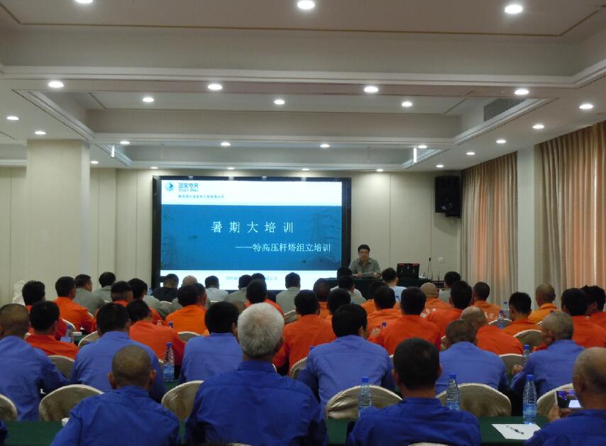 為確保工人正確使用和維護該型抱桿,7月17日至18日,白鶴灘~江蘇±800千伏特高壓直流輸電線路工程(鄂7標(biāo)段)立塔作業(yè)前,鄂電“鐵軍”組織即將進場施工的17個作業(yè)層班組100人,開展為期兩天的理論學(xué)習(xí)、實操培訓(xùn)暨桿塔組立首基試點。培訓(xùn)圍繞落地雙搖臂抱桿使用注意事項、落地抱桿使用組塔要點及安全控制措施等內(nèi)容展開。抱桿、絞磨生產(chǎn)廠家技術(shù)人員和該公司施工管理部、設(shè)備租賃分公司相關(guān)人員通過理論授課和現(xiàn)場實操演練結(jié)合的方式對抱桿的構(gòu)件、性能參數(shù)以及安裝使用流程進行全面介紹,并針對作業(yè)人員提出的問題作了細(xì)致解答。