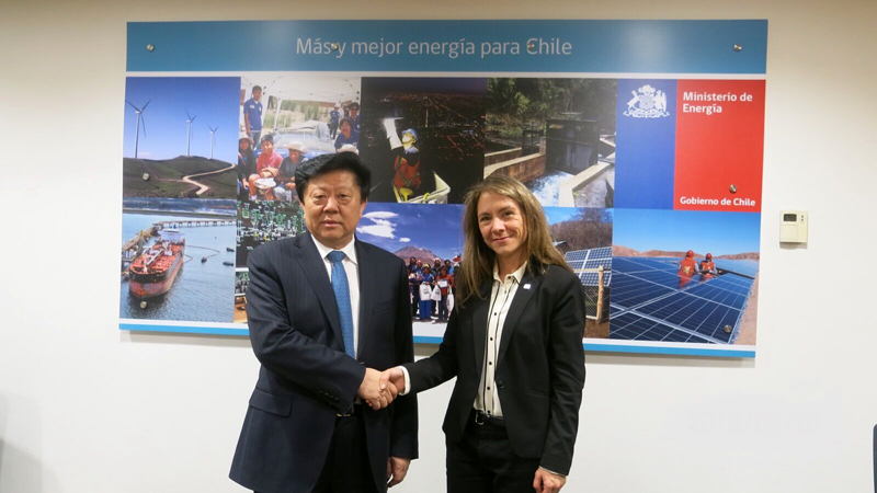 5月24日,南方電網(wǎng)公司黨組書記、董事長李慶奎拜會智利能源部長吉梅尼茲女士。(姜雨彤 攝)