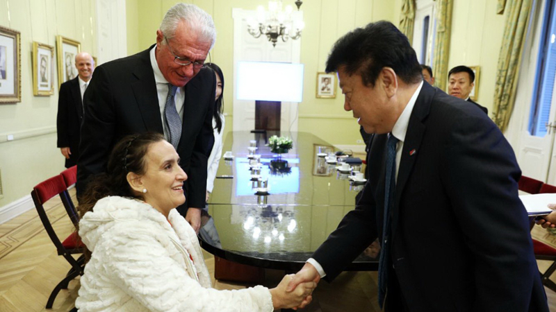 5月22日,南方電網(wǎng)公司黨組書記、董事長李慶奎拜會阿根廷副總統(tǒng)米切蒂女士。(姜雨彤 攝)