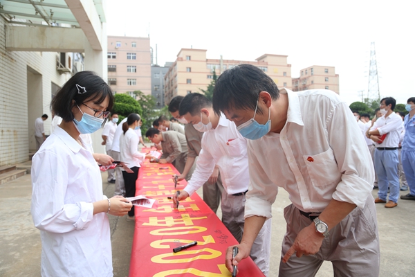 圖為現(xiàn)場人員進(jìn)行安全生產(chǎn)月主題簽名