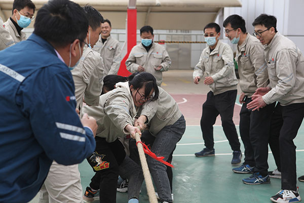 活動由《五人六足跑》《合作共贏》《黨史知識我知道》《紅歌接力》《拔河大賽》等5個項目組成。在《五人六足跑》《合作共贏》項目中,將各參賽隊員的默契表現(xiàn)展現(xiàn)的淋漓盡致,他們齊心協(xié)力、團結(jié)一致,充分展示了廣大職工充滿活力、拼搏向上的精神面貌。《黨史知識我知道》《紅歌接力》項目將整場活動推向高潮,尤為突出的是廣大職工掌握黨史知識的扎實度,每遇一題,各參賽隊反應迅速,競相展開黨史知識作答,正確率高、回答速度快,比賽中難分伯仲。在《拔河大賽》項目中,各隊都顯示出最強的比賽陣容,只見隊員們緊握長繩,卯足了勁拼命往后拉,哨子聲、吶喊聲此起彼伏,現(xiàn)場氣氛異常激烈。