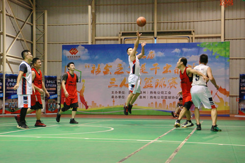 中國電力網(wǎng)訊 為豐富員工業(yè)余生活,提高員工身體素質(zhì),增進各外委單位及各部門間溝通與交流,國能(泉州)熱電有限公司開展第二屆“社會主義是干出來的”三人制籃球賽,此次比賽吸引來自機關、設備生技、運行、外委單位共12隊70人參加,11月15日,隨著一聲哨響,在該公司文體館正式吹起比賽號角。