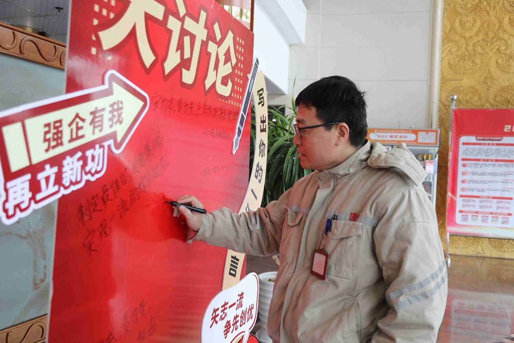 打卡,不僅是對(duì)目標(biāo)的記錄,更是對(duì)自我成長(zhǎng)的見(jiàn)證;誓言,不僅是對(duì)未來(lái)的期許,更是對(duì)責(zé)任的擔(dān)當(dāng)?;顒?dòng)現(xiàn)場(chǎng),職工們依次有序地走向留言板,紛紛在展板上“落筆為誓”,一筆一劃地寫(xiě)出自己的一流誓言,表達(dá)著自己誓要“矢志一流爭(zhēng)先創(chuàng)優(yōu) 強(qiáng)企有我再立新功”的堅(jiān)定決心。“制定最佳的發(fā)電策略,實(shí)現(xiàn)一流的綜合效益”“建設(shè)一流的供應(yīng)鏈,筑牢企業(yè)成本優(yōu)勢(shì)”“深挖設(shè)備潛能,爭(zhēng)創(chuàng)一流能耗水平”“安為本,責(zé)為先,點(diǎn)滴抓起深化一流安全管理”……一句句熱血的誓言充盈著整張展板,他們筆下的每一個(gè)字都充滿了力量和奮斗的光芒,激勵(lì)著每一位職工把承諾深深鐫刻在心里,并轉(zhuǎn)化為實(shí)際行動(dòng)。