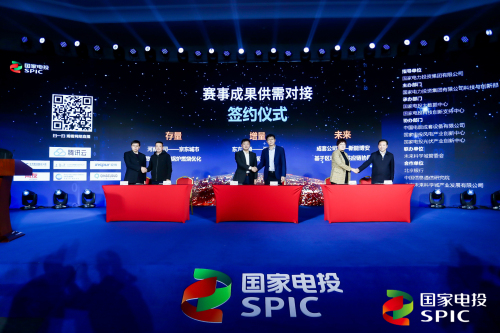 會議還對“國家電投集團云邊協(xié)同大數(shù)據(jù)生態(tài)合作社區(qū)”進行了推介,江毅、國資委科創(chuàng)局信息化處副處長劉進亮、集團公司科技創(chuàng)新總監(jiān)范霽紅、集團公司數(shù)字化管理中心主任汪峰、北京未來科學城管理委員會科技創(chuàng)新處處長張衛(wèi)軍、北京銀行中關村海淀園支行行長張波、獲獎代表何葵東,共同啟動“國家電投集團云邊協(xié)同大數(shù)據(jù)生態(tài)合作社區(qū)”成立儀式。40余家技術方、產(chǎn)業(yè)方、金融方機構加入了生態(tài)合作社區(qū),河南公司與京東城市、東方能源與深圳量云、成套公司與新能博安分別作為“存量牌”“增量牌”“未來牌”代表進行供需對接意向簽約。