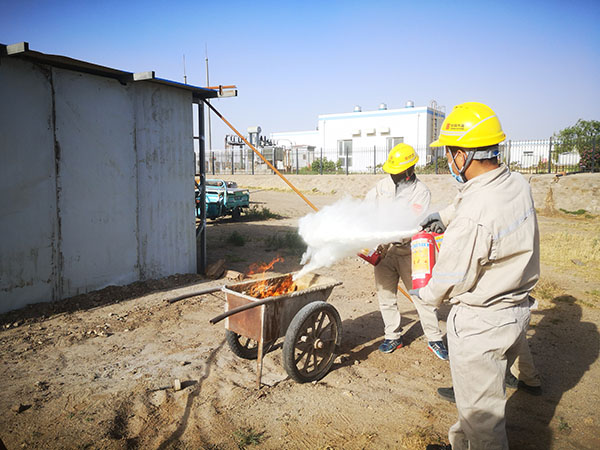 中國電力網(wǎng)訊 為進一步提高職工消防器材及消防用具使用熟練程度,提升火災(zāi)事故發(fā)生時的應(yīng)急處置能力,內(nèi)蒙古大唐海勃灣水利樞紐開發(fā)有限公司所屬蘭山光伏電站近日陸續(xù)開展了干粉滅火器、消防戰(zhàn)斗服、正壓呼吸器及防毒面具等實操培訓(xùn)演練活動。