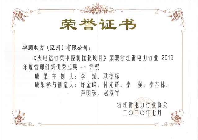 中國電力網(wǎng)訊 近日,由浙江省電力行業(yè)協(xié)會主辦的2019年度管理創(chuàng)新優(yōu)秀成果評審結(jié)果揭曉,華潤溫州電廠《火電運(yùn)行集中控制優(yōu)化項(xiàng)目》從200余項(xiàng)創(chuàng)新成果中脫穎而出,榮膺一等獎。