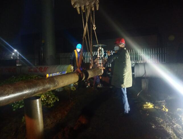 “方區(qū)長要求務(wù)必連夜搶修,確保盡快投產(chǎn)!現(xiàn)在這個(gè)非常時(shí)期,雙匯食品復(fù)產(chǎn)是重要的民生工程......”“不管風(fēng)雪多大,保證完成任務(wù)!”向當(dāng)?shù)卣畢R報(bào)得到反饋后,華電蕪湖公司迅速成立“攻堅(jiān)隊(duì)”,按照一級(jí)搶險(xiǎn)任務(wù)實(shí)施進(jìn)行:確定“改道引管供汽”方案、編制《廠外供熱至雙匯地埋管道消缺方案及安全技術(shù)措施》、組織施工人員及物料到位,連夜施工連夜開工,并由總工、副總工親自現(xiàn)場督陣,全力以赴推進(jìn)供暖缺陷搶修任務(wù)。