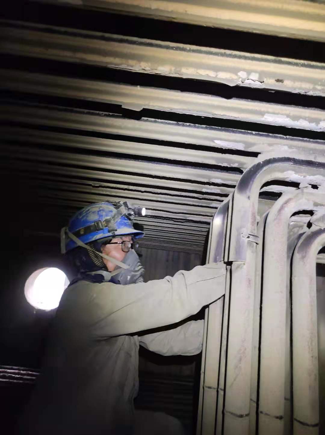 該公司鍋爐檢修班技術骨干與金屬監(jiān)督人員走爐膛內(nèi)認真,伃細檢查,眼看、手摸、測厚儀測量,對發(fā)現(xiàn)的“四管”缺陷進行認真記錄在冊,對查出有問題的管束:鼓包、防磨瓦脫落、翹曲、管壁磨損等情況,采取相應的技術手段、方法進行修復處理,做實、做細鍋爐“四管”防磨、防爆檢查及修復“四管”缺陷的工作,提高機組運行可靠性,為安全生產(chǎn)工作夯實基礎。
