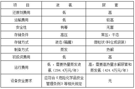 兩種還原劑在安全性和經(jīng)濟性上各有優(yōu)勢,采用尿素作為還原劑是比較安全的,但初期投資造價高,運行費用也高;采用液氨作為還原劑,相對初期投資造價低,運行費用低,但液氨作為重大危險源,在運輸和儲備時存在一定的安全隱患,在運輸成本上以及在生產(chǎn)安全管理上對電廠的運行水平要求較高,存在一定的危險性。因此從經(jīng)濟或運行維護成本考慮,還原劑可以選擇液氨,但從安全角度考慮,則應(yīng)選擇尿素,中能自備電廠綜合考慮各種因素最終選擇尿素是較好的選擇。