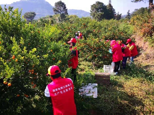 而在蜜桔的的采摘和銷售方面,由于翠云村生產發(fā)展主要以南豐蜜桔為主,但是對于貧困戶來說,蜜桔的采摘和銷售都是一大難題,常常因為勞動力不足采摘不及時而損失不少,汪彬得知后組織黨員服務隊和青年志愿者們幫助采摘,并聯(lián)系網絡微商進行上村收購,同時通過“娘家”國網南豐縣供電公司全力開展扶貧產品進食堂活動、國網電商“慧農幫”線上平臺等擴大了該村蜜桔銷售渠道。