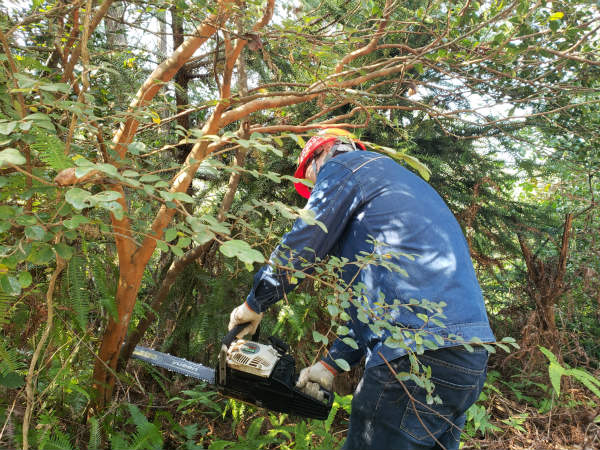 由于生長(zhǎng)于輸電線路附近的樹木,常常會(huì)給線路的穩(wěn)定運(yùn)行帶來麻煩,還有一些生長(zhǎng)在變壓器附近的藤蔓,它們的過快生長(zhǎng)會(huì)給設(shè)備和線路帶來許多不穩(wěn)定因素。因此,該公司定期要求各供電所組織班組成員進(jìn)行線路砍青掃障工作,消除樹線隱患,保證輸電線路的穩(wěn)定運(yùn)行。