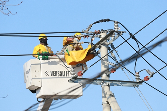 中國電力網(wǎng)訊 12月15日,氣溫降至零下8攝氏度,在濰坊壽光市北洛工業(yè)園區(qū),國網(wǎng)壽光市供電公司光明服務公司工程五隊帶電作業(yè)人員冒著刺骨的寒風對10千伏鄉(xiāng)直線臨澤支線041號桿進行帶電接火作業(yè),及時滿足客戶用電需求,為冬季園區(qū)企業(yè)和居民安全可靠用電提供保障。