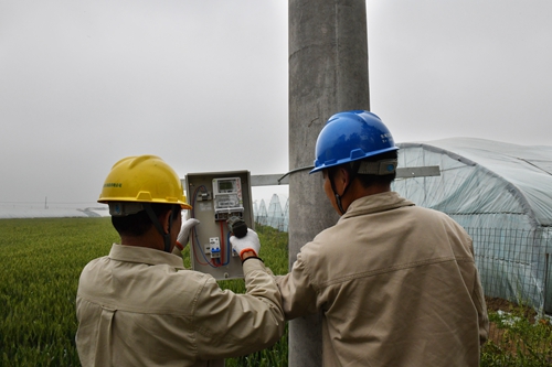 中國(guó)電力網(wǎng)訊 5月12日,江蘇連云港東??h供電公司黃川供電所員工在該鎮(zhèn)桃李村西湖草莓種植園供電線路附近,為村民草莓大棚灌溉用電接線裝表。當(dāng)下正值草莓秧苗結(jié)果沖刺期,黃川供電所接到農(nóng)戶用電申請(qǐng)后,立即進(jìn)行勘察接電,保障農(nóng)戶大棚及時(shí)灌溉用電。
