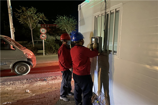 急難險(xiǎn)重,黨員先行。疫情監(jiān)測(cè)點(diǎn)大多設(shè)在村子的交通路口,接電難度較大,為了盡早給臨時(shí)防疫小屋送去明亮與溫暖,黨員先鋒隊(duì)員們克服地區(qū)跨度遠(yuǎn),環(huán)境復(fù)雜、夜間照明不足、夜晚寒冷等種種困難,以高度的政治責(zé)任感和使命感,連續(xù)奮戰(zhàn)5個(gè)多小時(shí),提前完成了巴音陶亥鎮(zhèn)全部疫情防控檢測(cè)站點(diǎn)接電任務(wù)。