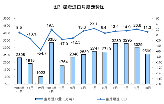 10月份,煤炭進(jìn)口2568.5萬噸,同比增長(zhǎng)11.3%,增速比上月回落9.3個(gè)百分點(diǎn);1—10月份,煤炭進(jìn)口2.8億噸,同比增長(zhǎng)9.6%。