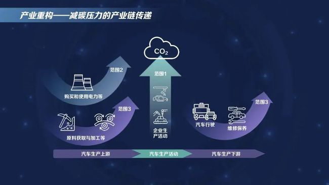 另外,產(chǎn)業(yè)重構(gòu)方面,減碳壓力的產(chǎn)業(yè)鏈傳遞也很突出?,F(xiàn)在越來越多的全球性大公司自主承諾減排,原來對一家企業(yè)到底排多少碳主要看它的生產(chǎn)過程,但現(xiàn)在已經(jīng)擴(kuò)大到產(chǎn)業(yè)鏈。一個產(chǎn)業(yè)鏈包括上游的原料和下游產(chǎn)品的應(yīng)用,把上下游綜合考慮起來,就會形成減碳壓力的產(chǎn)業(yè)鏈傳遞。比如,中國現(xiàn)在是世界上最大的小汽車生產(chǎn)和消費(fèi)市場,每年產(chǎn)銷2500—3000萬輛,這個量是美國和日本加起來的總和,這么大的量,對鋼材會有比較大的需求。一家承諾了整個產(chǎn)業(yè)鏈上要減碳的跨國公司在生產(chǎn)小汽車時,就會要求上游生產(chǎn)鋼材的廠家也要跟著它減碳,這樣會形成倒逼,煉鋼廠如果達(dá)不到它的要求,它就會去找其他能達(dá)到要求的供應(yīng)商,所以在自主減排的目標(biāo)實(shí)現(xiàn)里會形成新的壓力傳遞,這是未來產(chǎn)業(yè)重構(gòu)里非常重要的驅(qū)動因素。