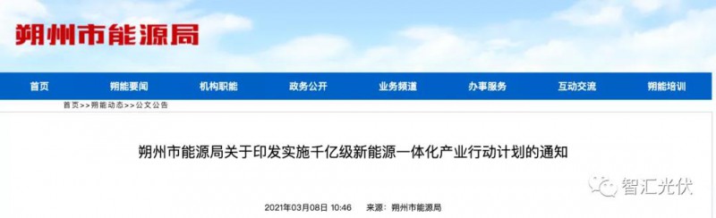 2021年3月8日,山西省朔州市能源局發(fā)布《關(guān)于印發(fā)實施千億級新能源一體化產(chǎn)業(yè)行動計劃的通知》(朔能源發(fā)〔2021〕20號),提出: