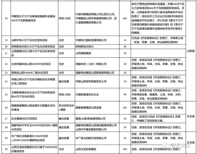 晉能、中廣核、上海電氣、阿特斯、金風(fēng)科技、中能建等企業(yè)也有10~50萬kW的項目規(guī)模。