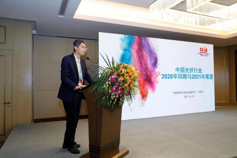 論壇上,中國光伏行業(yè)協(xié)會(huì)王世江秘書長做了題為《2020年中國光伏行業(yè)回顧和2021年中國光伏行業(yè)展望》的主題演講。王秘書長指出,2020年,國內(nèi)光伏電站裝機(jī)規(guī)模持續(xù)提升,投資成本繼續(xù)下降,產(chǎn)業(yè)集中度快速提升,技術(shù)不斷發(fā)展,融資規(guī)模不斷擴(kuò)大,國際化布局不斷加強(qiáng);展望2021年,全球光伏市場規(guī)模將加速擴(kuò)大,源網(wǎng)荷儲(chǔ)一體化和多能互補(bǔ)大基地將成為電站開發(fā)關(guān)注熱點(diǎn),技術(shù)快速迭代,行業(yè)將迎來擴(kuò)產(chǎn)潮,“光伏+”模式帶來更多應(yīng)用可能性,預(yù)計(jì)光伏將占據(jù)可再生能源增量市場半壁江山。