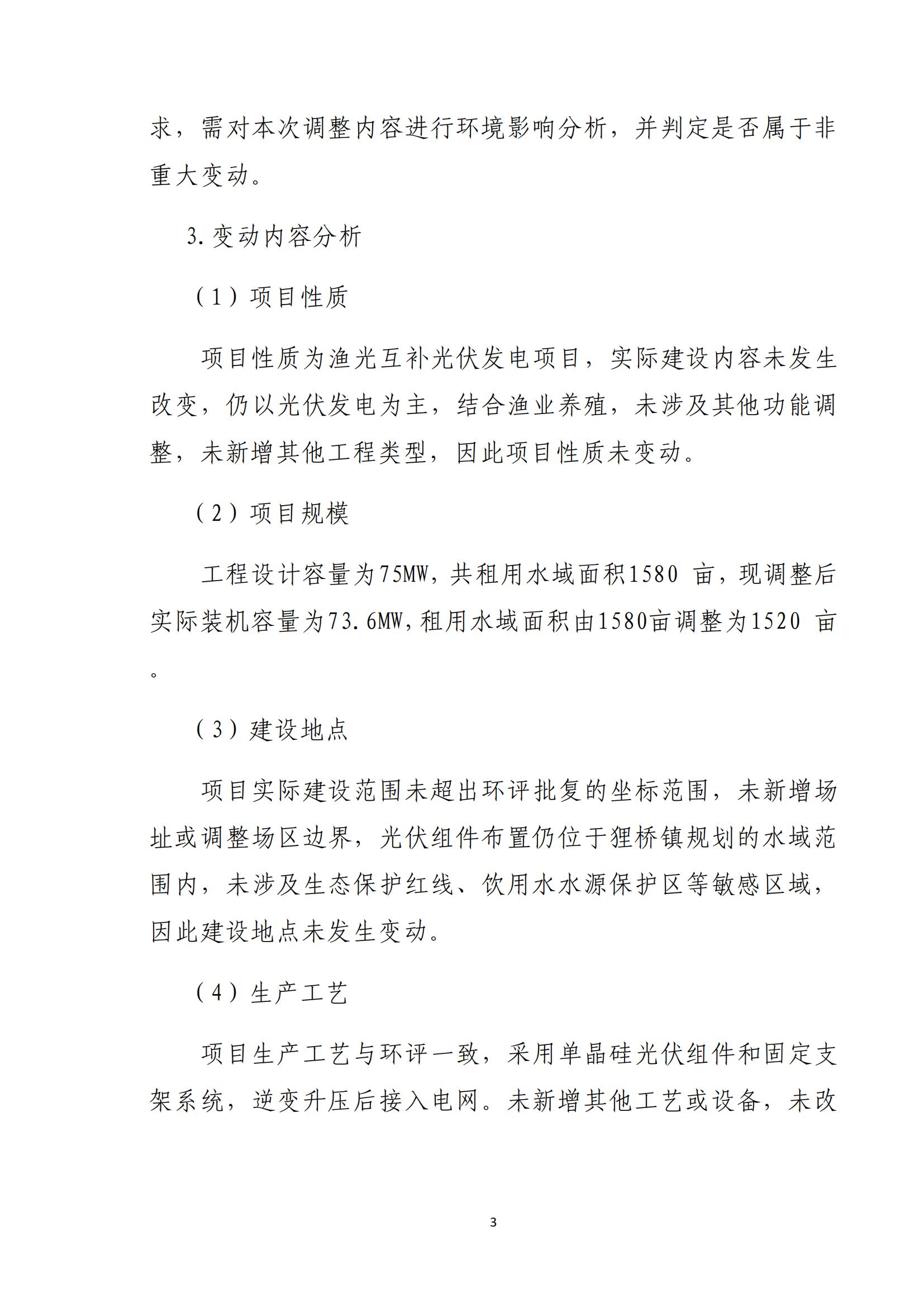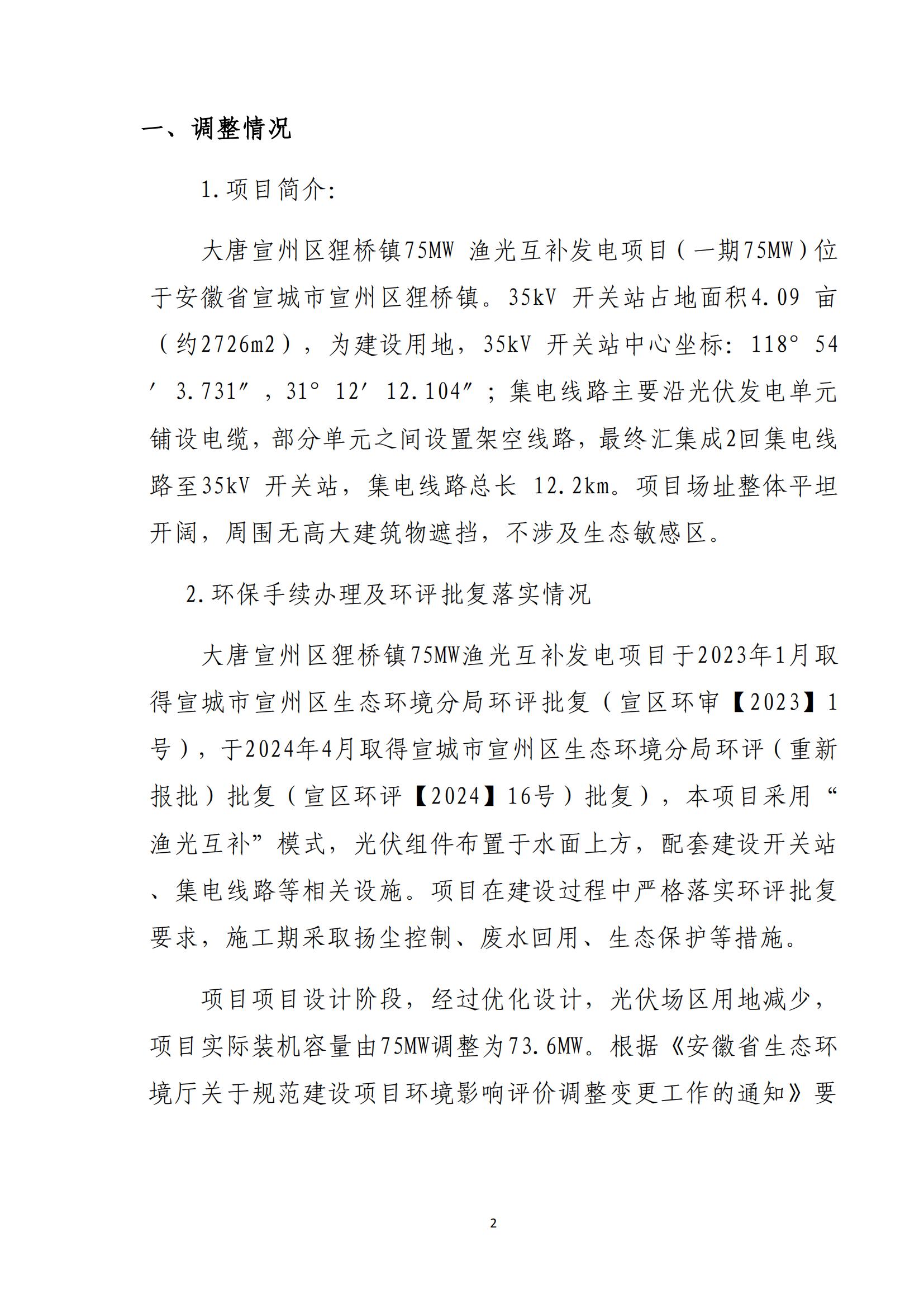 大唐宣州區(qū)貍橋鎮(zhèn)75MW漁光互補發(fā)電項目非重大變動環(huán)境影響分析說明