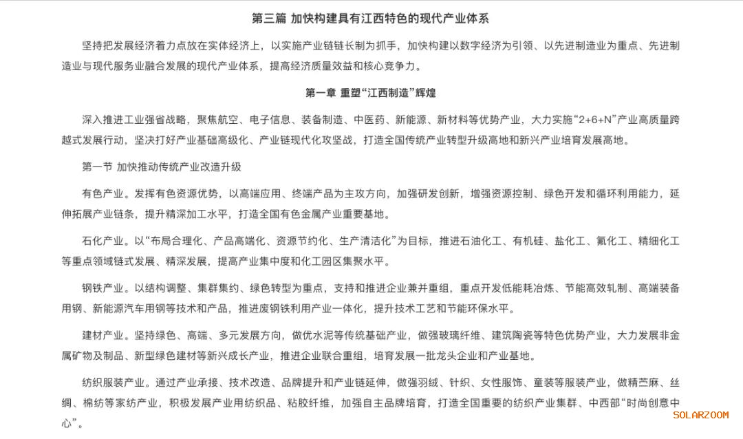 提升贛東北開放合作水平,提升“兩光一車”(光伏、光學(xué)、汽車)產(chǎn)業(yè)發(fā)展水平,打造全國光伏光學(xué)產(chǎn)業(yè)基地。加快贛西轉(zhuǎn)型升級步伐,支持新余推進(jìn)鋼鐵、鋰電、硅灰石、光伏、電子信息等產(chǎn)業(yè)集群發(fā)展,打造中部地區(qū)新型工業(yè)強(qiáng)市、國家新能源科技示范城。