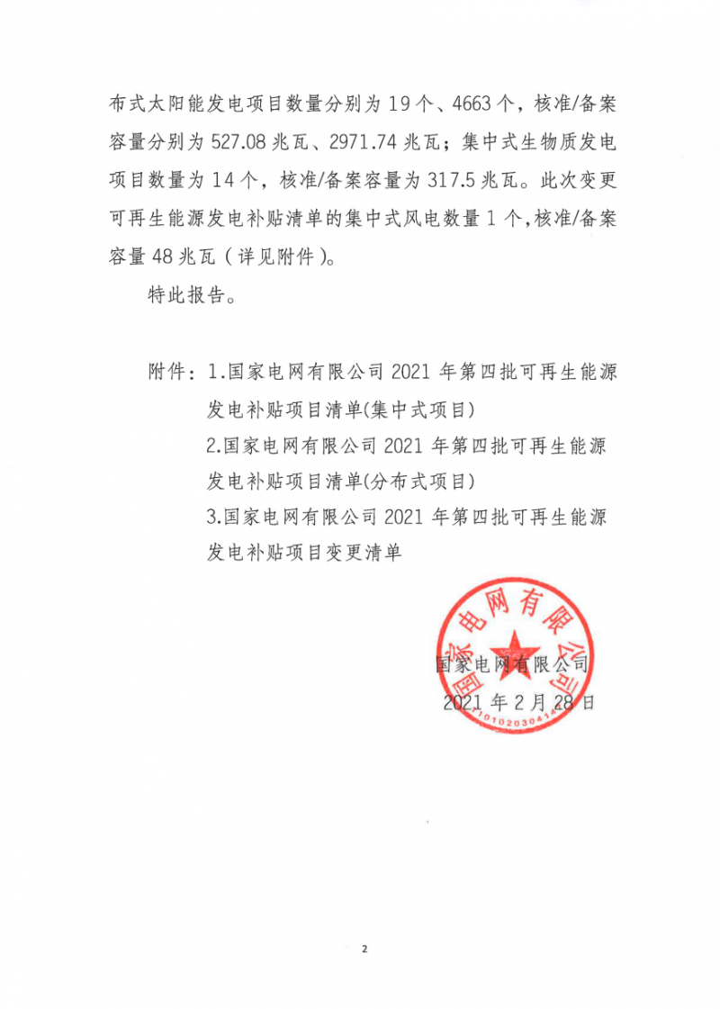 2020年2月28日,國網(wǎng)公布2021年第四批可再生能源發(fā)電補貼項目清單。