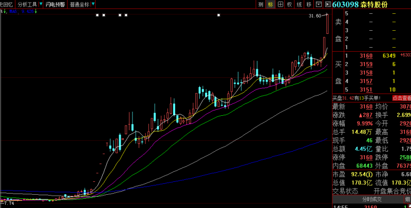 消息公布后,森特股份連續(xù)五個漲停。