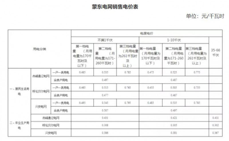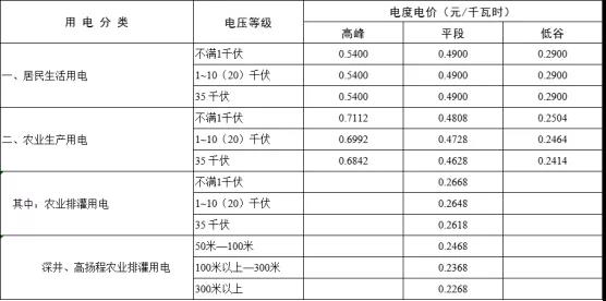 備注:1、農村低壓各類用電按上表合計欄電價執(zhí)行,其中含維管費。2、一戶一表居民生活用電二檔、三檔電價,在一檔電價基礎上每千瓦時分別提高0.05元和0.3元。