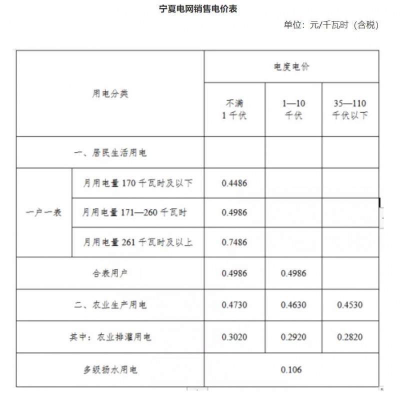 寧夏電網(wǎng)峰谷分時電價表