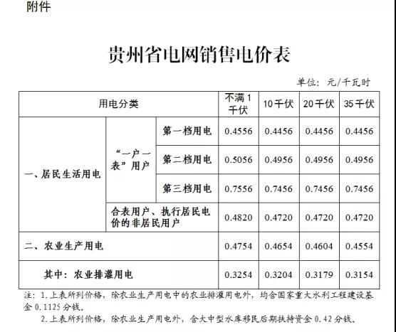 注:1、上表所列價格,除已摘帽貧困縣農業(yè)排灌用電外,均含國家重大水利工程建設基金0.15525分錢。2、上表所列價格,居民生活用電含可再生能源電價附加0.1分錢,含大中型水庫移民后期扶持基金0.62分錢。