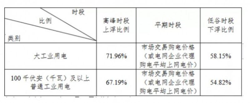 江蘇省工業(yè)用電峰谷分時電價浮動比例表