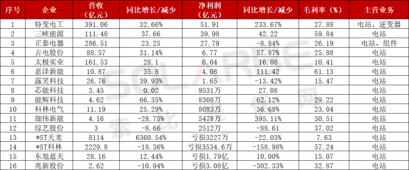 逆變器企業(yè)來(lái)看,7家逆變器企業(yè)Q1~Q3均實(shí)現(xiàn)盈利,2家企業(yè)凈利潤(rùn)同比去年同期下滑,其中禾望電氣毛利率達(dá)38.23%、固德威34.55%、科士達(dá)33.81%。