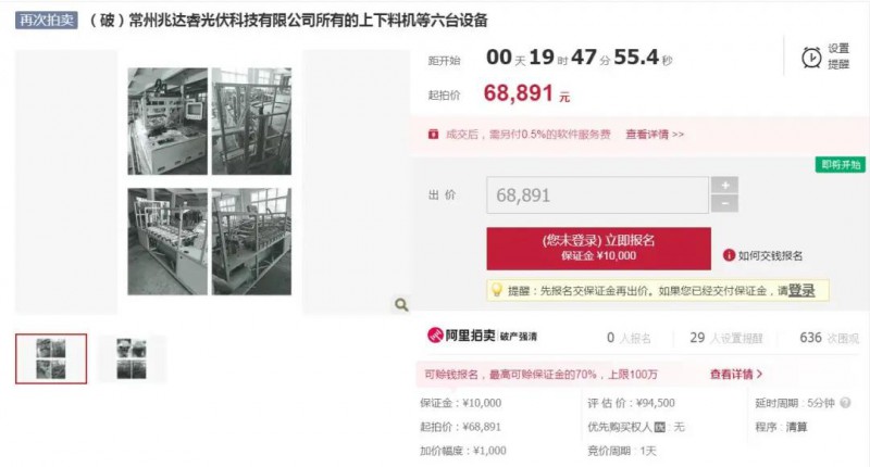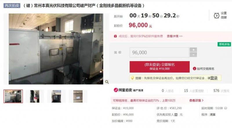 近日,一批土地使用權(quán)、光伏電站機(jī)器設(shè)備及金剛線多晶截?cái)鄼C(jī)、上下料機(jī)、太陽能晶片計(jì)數(shù)儀等光伏設(shè)備即將在阿里司法拍賣平臺(tái)進(jìn)行拍賣。