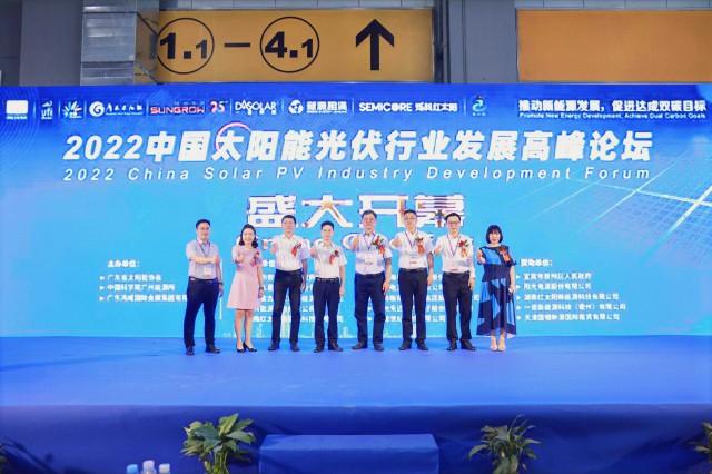 此次展會,湖南紅太陽光伏產(chǎn)品事業(yè)部總經(jīng)理凌付榮(右三)受邀出席2022中國太陽能光伏行業(yè)發(fā)展高峰論壇開幕儀式,與行業(yè)內(nèi)精英共同見證太陽能光伏行業(yè)的這一具有代表性的時刻。