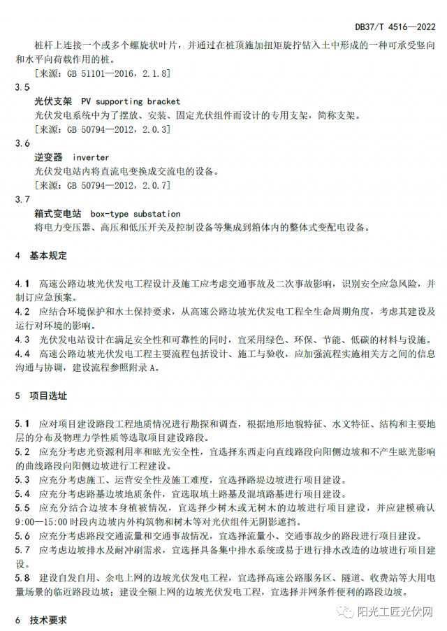 山東高速集團(tuán)黨委常委、副總經(jīng)理石振源回答說,本標(biāo)準(zhǔn)是在現(xiàn)行光伏發(fā)電工程建設(shè)技術(shù)標(biāo)準(zhǔn)體系下,根據(jù)高速公路特點(diǎn)制定的。標(biāo)準(zhǔn)規(guī)定了邊坡光伏發(fā)電工程的項(xiàng)目選址、施工交通組織、監(jiān)控測量、環(huán)境保護(hù)與水土保持等技術(shù)要求,內(nèi)容詳細(xì)、全面、完整,具有較強(qiáng)的專業(yè)性和操作性。