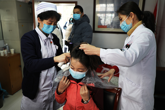 “沒事,頭發(fā)剪掉還可以再長出來,我們現(xiàn)在最要緊的工作就是與疫情作斗爭,頭發(fā)剪短工作起來就更方便?!?/p>