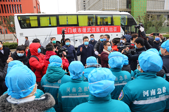 2月15日上午11點(diǎn)半,三門峽市委書記劉南昌,市委副書記、市長安偉等領(lǐng)導(dǎo)在三門峽為白衣戰(zhàn)士們深情送行。