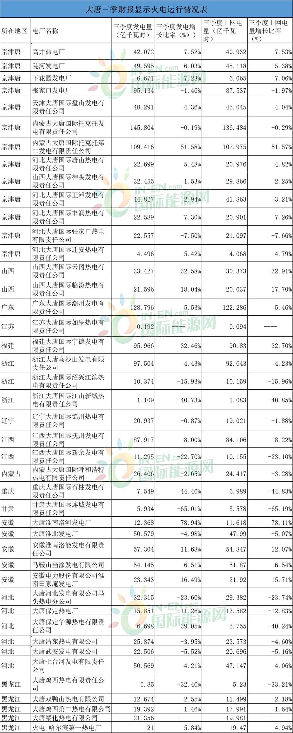 根據(jù)統(tǒng)計(jì),大唐旗下火電廠在2018年前三季度有20家出現(xiàn)了發(fā)電量同比降低的情況,占比近50%,其中最嚴(yán)重的是甘肅大唐國(guó)際連城發(fā)電有限責(zé)任公司,其發(fā)電量下降幅度高達(dá)65.01,上網(wǎng)電量下降幅度也達(dá)到65.19%。