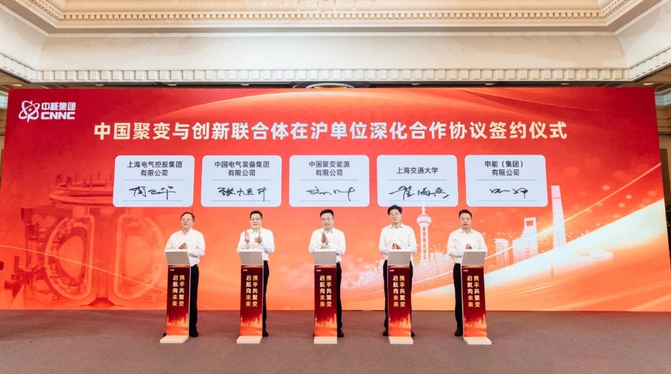 會上,中國聚變公司與上海交通大學(xué)、中國電氣裝備集團(tuán)、上海電氣集團(tuán)、申能集團(tuán)等在滬單位簽署聚變創(chuàng)新聯(lián)合體深化合作協(xié)議。