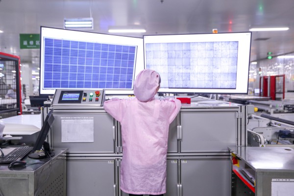 正泰新能源海寧工廠,工人正在進行光伏組件EL檢測工序