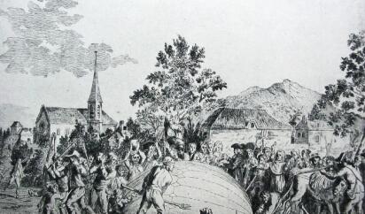 △ 1783年--雅克·查爾斯(Jacques Charles,工程師)用波義耳的方法制造氫氣。他們耗費了250千克的硫酸和500千克的鐵,生成的氫氣被巧妙地填充進了一個直徑3.7m的浸膠織物氣球中。一切準(zhǔn)備就緒后,氣球于1783年8月26日晚秘密被送至戰(zhàn)神廣場。乘坐氫氣球“ La Charlière”號進行了首次飛行。雅克·查爾斯(Jacques Charles)和助手羅伯特兄弟實現(xiàn)了第一次無人的氫氣球飛行。