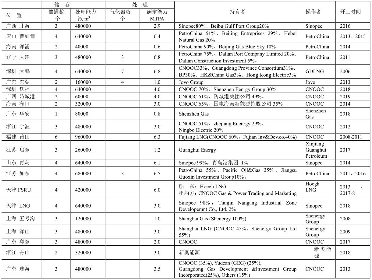 2020年中國(guó)LNG接收站