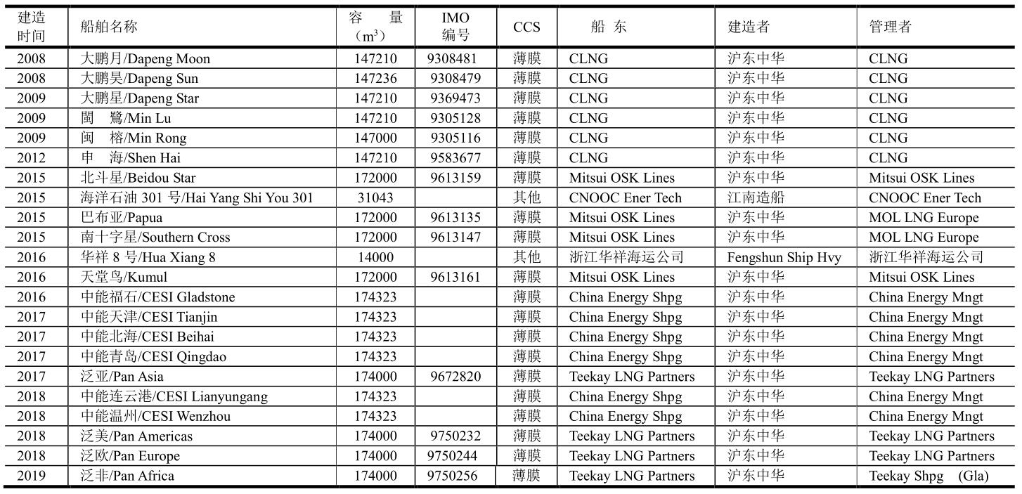 2019年中國(guó)交付的LNG船舶
