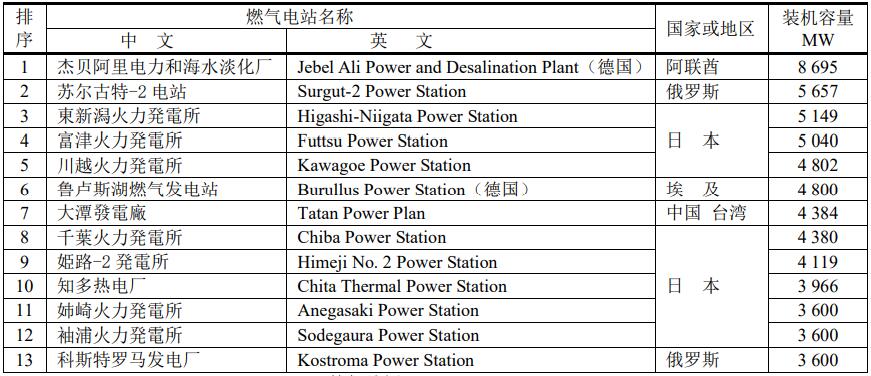 中國主要以燃煤發(fā)電為主,其次為燃?xì)獍l(fā)電的份額不高,但是進(jìn)展比較快。目前中國燃?xì)獍l(fā)電站如表。